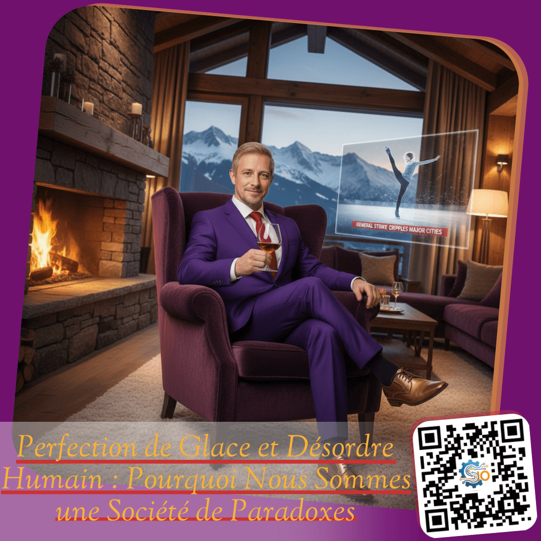 Mes chers amis, installez-vous confortablement. Je vous parle depuis le salon de mon chalet, ici au cœur des Alpes suisses. Dehors, la neige tombe avec une régularité presque hypnotique, recouvrant les sommets d’un manteau immaculé. Je porte aujourd’hui mon costume violet favori, celui dont la soie capte la lumière des flammes de la cheminée, avec … Allez-y, cliquez !Perfection de Glace et Désordre Humain : Pourquoi Nous Sommes une Société de Paradoxes