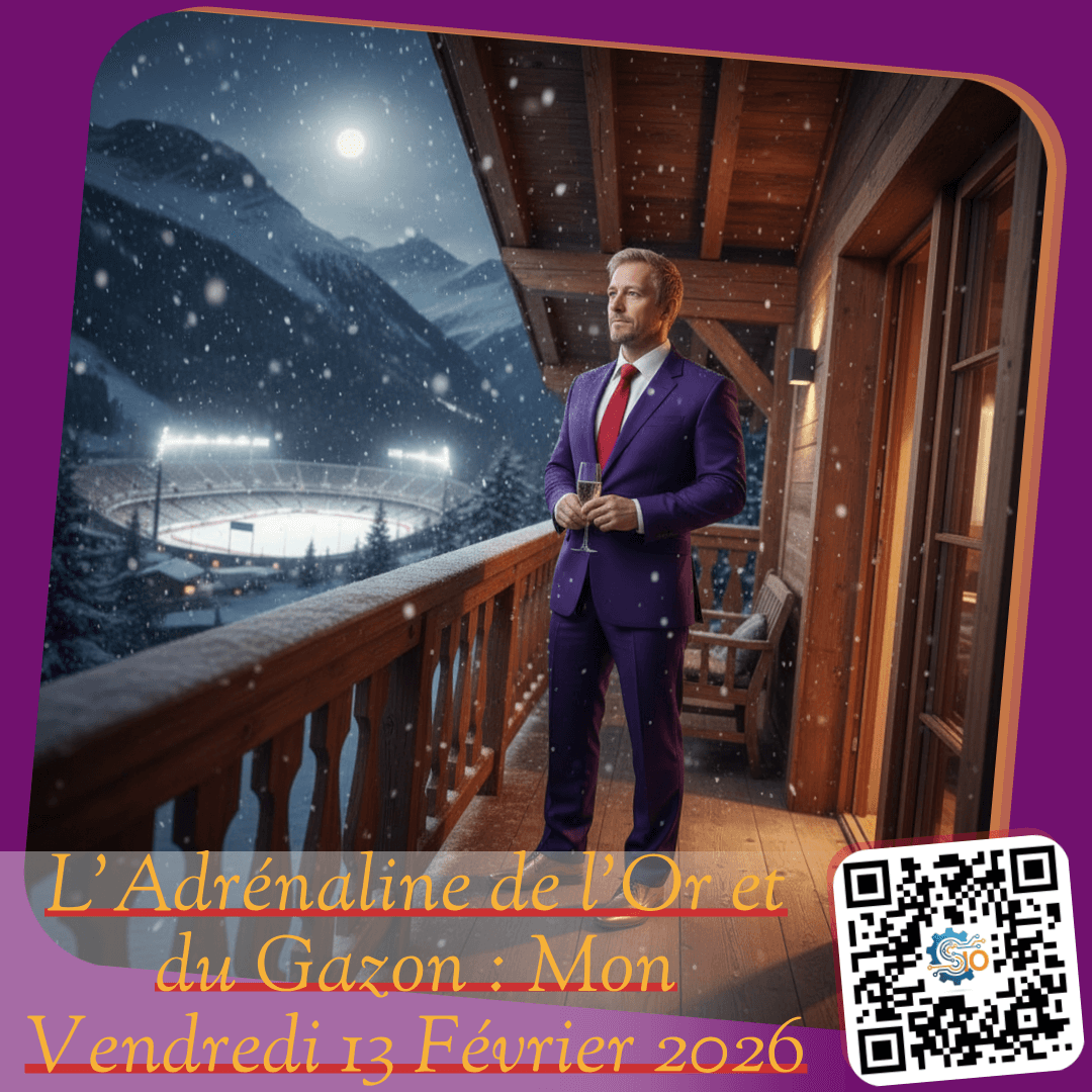Mes chers amis, installez-vous confortablement. Alors que la nuit tombe sur mes chères Alpes Suisses, je vous écris depuis mon salon, enveloppé dans mon costume violet favori, une coupe de champagne à la main. Dehors, la neige tombe avec une intensité presque théâtrale. Nous sommes le vendredi 13 février 2026, et si certains y voient … Allez-y, cliquez !L’Adrénaline de l’Or et du Gazon : Mon Vendredi 13 Février 2026